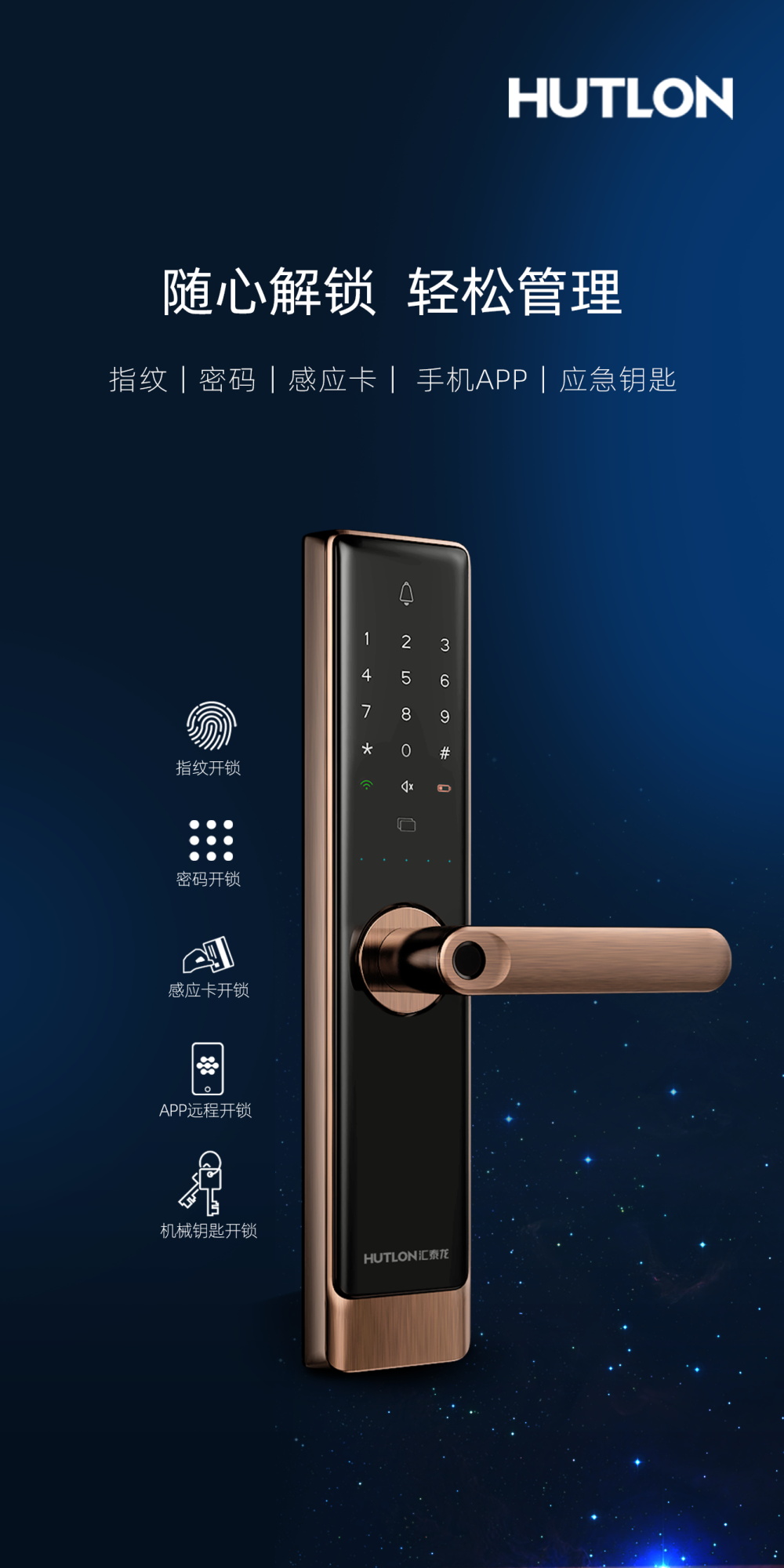 支持指紋、密碼、感應(yīng)卡、機械鑰匙四合一開鎖方式;